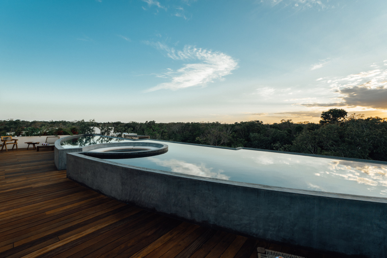 / nightStep into the most exclusive of our penthouse units at Satori. Where neutral tones and soft textures create an ambiance of calm and refinement. This exclusive penthouse unit features a big private plunge pool with relaxing views to Tulum's jungle. Inside, the luxurious design in whites and beiges complements high-quality appliances, a fully equipped kitchen, and 2 plush king-sized beds. White Serenity invites you to indulge in effortless luxury. Washer/Dryer and a Smart TV 55 in compliment the equipment. On the rooftop, you have expansive social space for gathering with friends, enjoying romantic moments viewing Tulum's sunrise, or simply basking in the Caribbean sun.