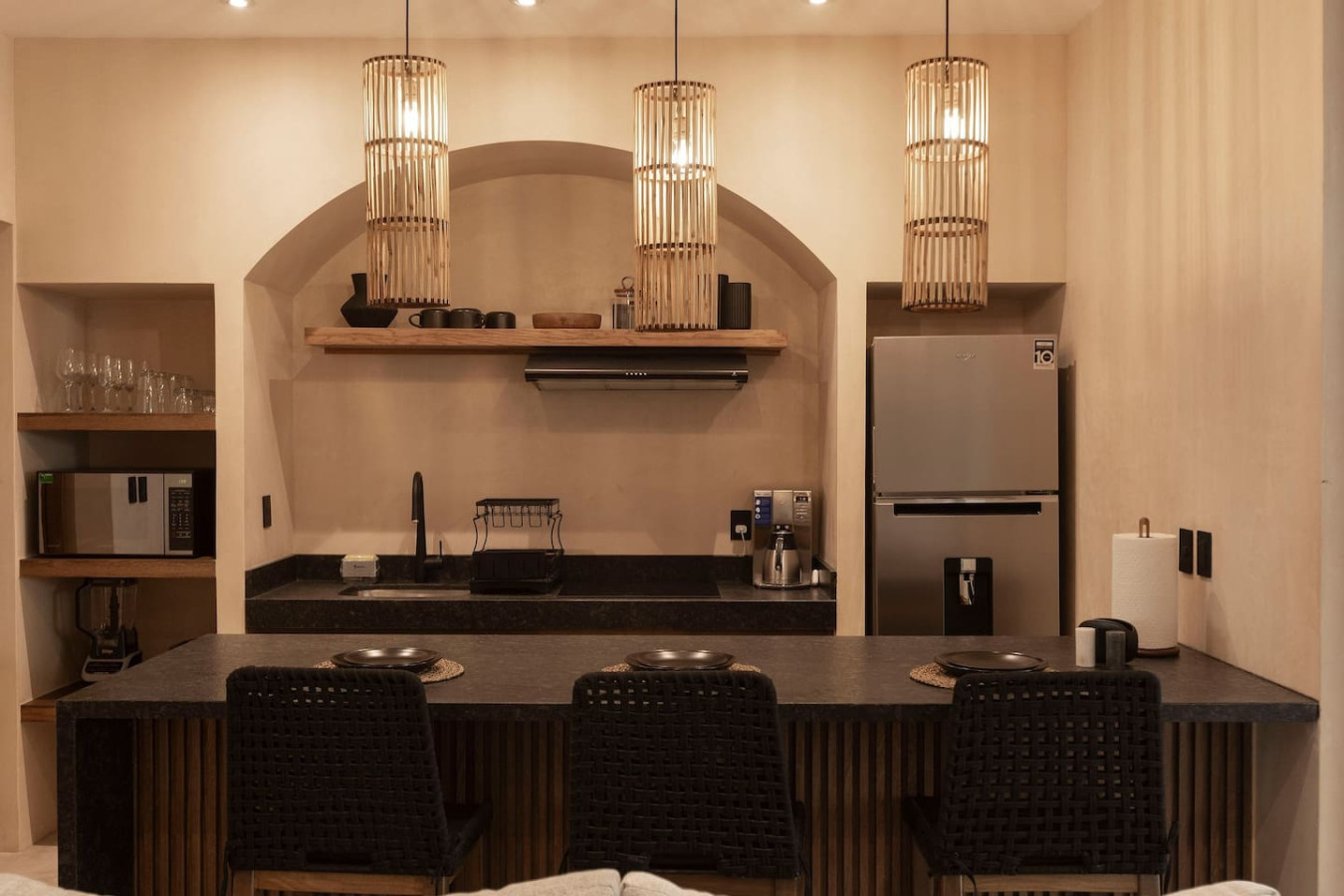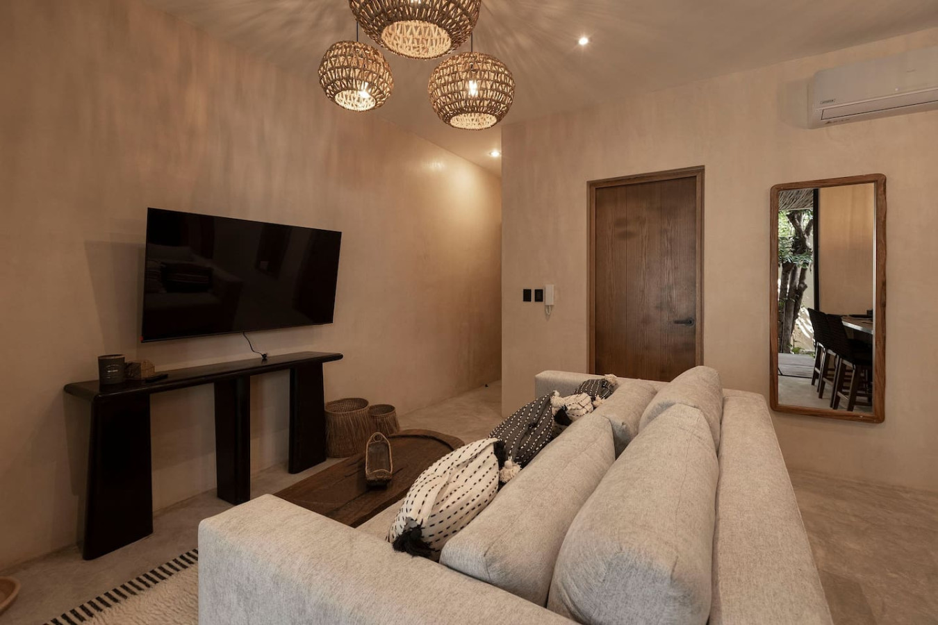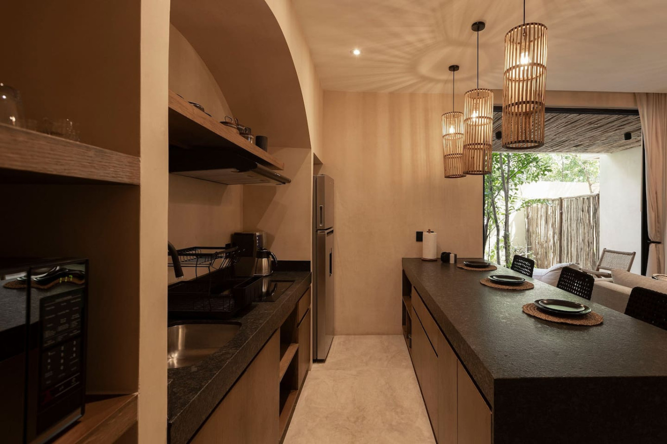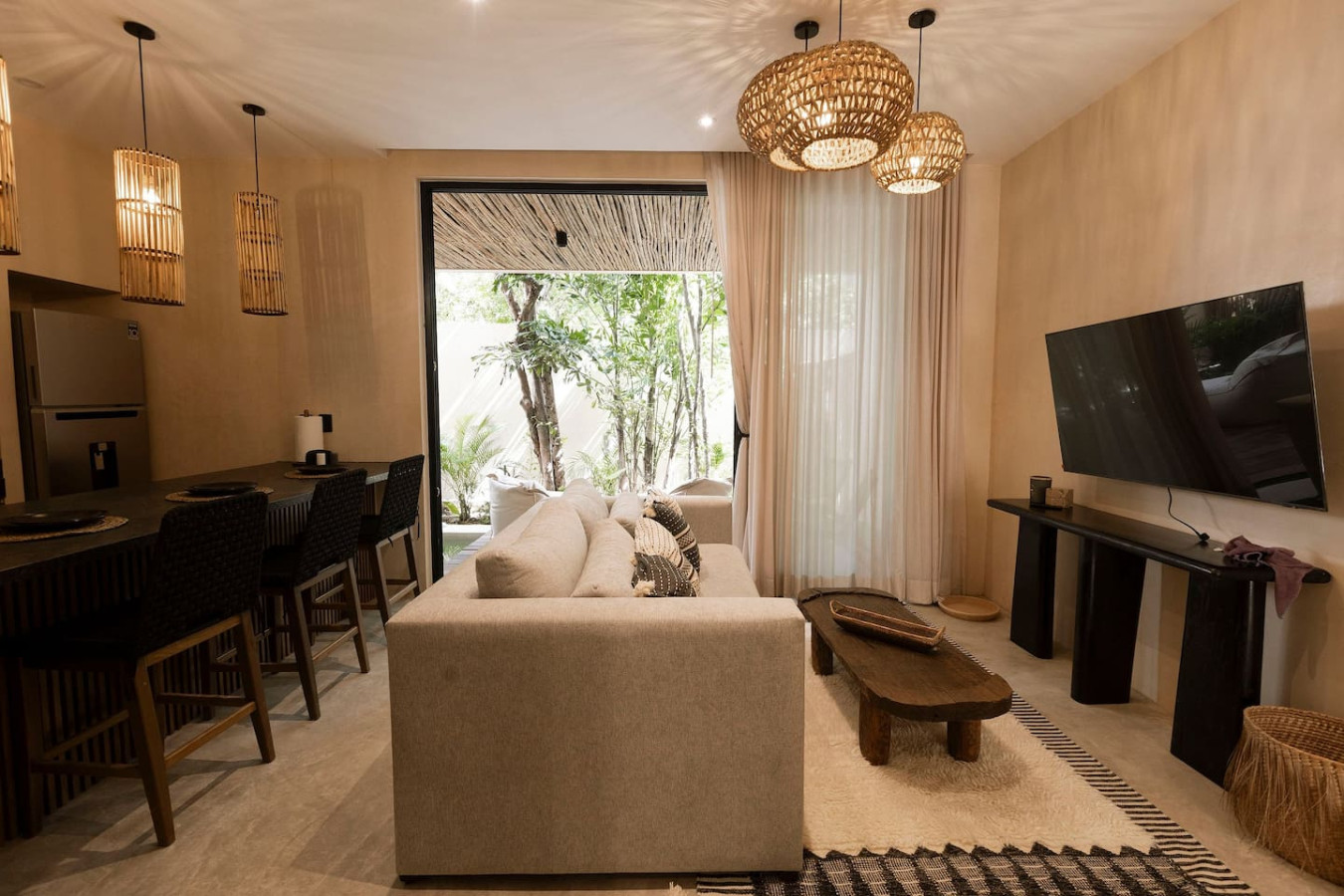 / nightEscape to a chic, ground-floor retreat with a private plunge pool and garden. Modern grays and blacks create a stylish ambiance. Work seamlessly with a dedicated desk, then unwind in the plush king bed. Fully equipped kitchen, washer/dryer, and sofa bed cater to all needs. Perfect for digital nomads, couples, or small families seeking a blend of comfort and adventure. Experience the magic of Tulum at Satori, nestled in Region 15 just 6 minutes from the main avenue and 1 km into the jungle, providing the perfect blend of tranquility and easy access to the action. Only 3.5 km away, dive into the vibrant hotel zone, with its numerous beach clubs lining the stunning Caribbean coast. The route from Tulum Avenue offers convenient access to shops, restaurants, pharmacies, and a gas station. For a lively evening, the renowned Calle 7 in La Veleta, with its eclectic mix of restaurants, bars, and boutiques, is just a short trip away. Arriving at Your Tulum Escape: We want your arrival to be as seamless as possible. You’ll find convenient parking available directly in front of the condo. We recommend you download the directions and the internet password for the common areas so you can access the access code for your accommodation Check-in: 4:00 PM Check-out: 11:00 AM Housekeeping: Complimentary Housekeeping: Enjoy a free cleaning service every seven days of your stay. This includes tidying up the bathrooms and kitchen, making the beds, and cleaning the floors. Extra Cleaning: If you’d like a more thorough cleaning or more frequent service, just let your concierge know. (Additional fees apply and are subject to availability). Bedding & Towels: Linen Changes: For stays longer than seven days, fresh linens and towels will be provided during your complimentary cleaning. In-Unit Laundry: For your convenience, each unit has a washer and dryer. You can also request extra linen changes through your concierge for a small fee. Electricity: Power Supply Notes: Due to ongoing development in Tulum, occasional power outages may occur due to work by the CFE (Mexico's Federal Electricity Commission). These outages are sometimes announced in advance, but schedules can change. During the rainy and hurricane seasons, outages can be more frequent and last longer. What We Provide: We have flashlights and rechargeable fans available for your use. Electricity Usage: We’ll take a meter reading at check-in and check-out. Your reservation includes ___ kw/h per day. Usage beyond this will be charged at __ per kw/h. Internet Access: Wi-Fi Details: You’ll receive the Wi-Fi network name and password upon arrival. Tech Support: Please contact your concierge if you experience any issues with the internet. Possible Disruptions: Internet service may be affected during heavy rains and hurricanes. Water: Tap Water: The tap water is not suitable for drinking or cooking, but it’s perfectly safe for brushing your teeth and showering. Waste Disposal: Recycling & Trash: Each unit has separate bins for organic and inorganic waste. Trash Removal: Our housekeeping staff will empty the trash during your complimentary cleanings. There are also larger bins available for guests outside the building. Air Conditioning: Optimal AC Use: The ideal setting for the mini-split AC units in this area is 24°C (75°F). Maintenance Requests: Please report any issues with the AC immediately. Responsible Use: Please turn off the AC/heating when you leave the unit. Hot & Cold Water: Faucet Operation: In Mexico, turning the tap to the right is for cold water, and turning it to the left is for hot water. Hot Water Warm-Up: Please note that it may take a few minutes for the hot water to come through. Your Well-being is Our Priority: At Satori, we value communication with our guests and look forward to meeting you. We will be available at the property from 9:00 a.m. to 6:00 p.m. to provide you with the best service. In case of an emergency outside of these hours, please contact any member of our staff or the security guard, who will be ready to assist you. Relaxed among nature It is advisable to rent a car, or motorcycle for easy access to the beach and town. Bikes rented on site. Welcome to Satori Tulum, an exclusive sanctuary nestled in the heart of Tulum’s lush jungle. Here, luxury meets nature in perfect harmony, offering you an unparalleled getaway that blends refined architectural design, high-quality natural materials, and vibrant greenery. Immerse yourself in an oasis featuring two spectacular main pools, thoughtfully curated spaces, and a serene ambiance designed to inspire relaxation and connection. While our location is a quick 7-minute drive from both Tulum’s vibrant town center and pristine beaches, the tranquil jungle setting ensures a peaceful retreat from the bustle. Please note that construction is ongoing nearby, with light noise possible between 9 am and 7 pm. However, the serenity of Satori Tulum and its wealth of amenities will undoubtedly make your stay memorable.